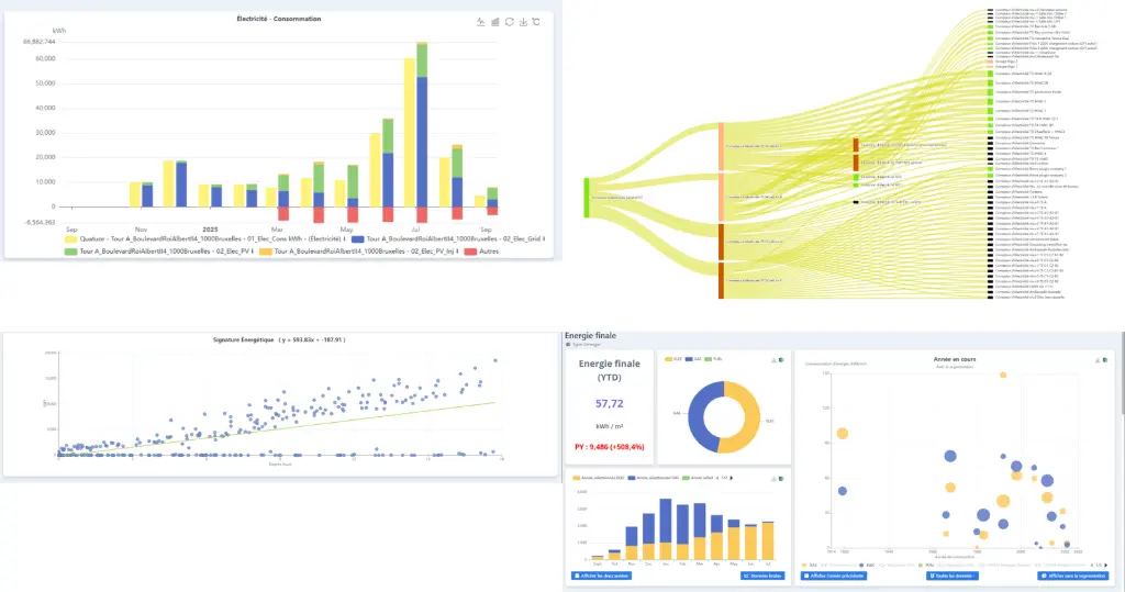 FANDO collabore étroitement avec la solution AISET. Cette plateforme met à votre disposition une gamme complète d'outils pour le reporting, l'analyse et le traitement des données : tableaux de bord, rapports automatisés, normalisation des consommations, diagrammes de Sankey...